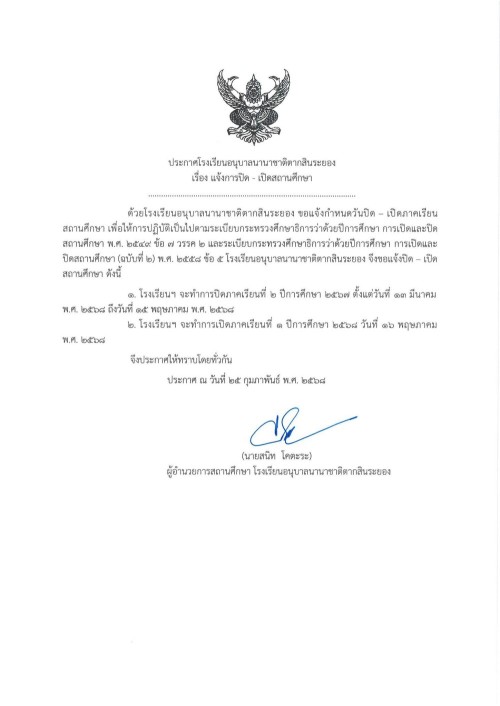 2.โรงเรียนฯ จะทำการเปิดภาคเรียนที่ 1 ปีการศึกษา 2568