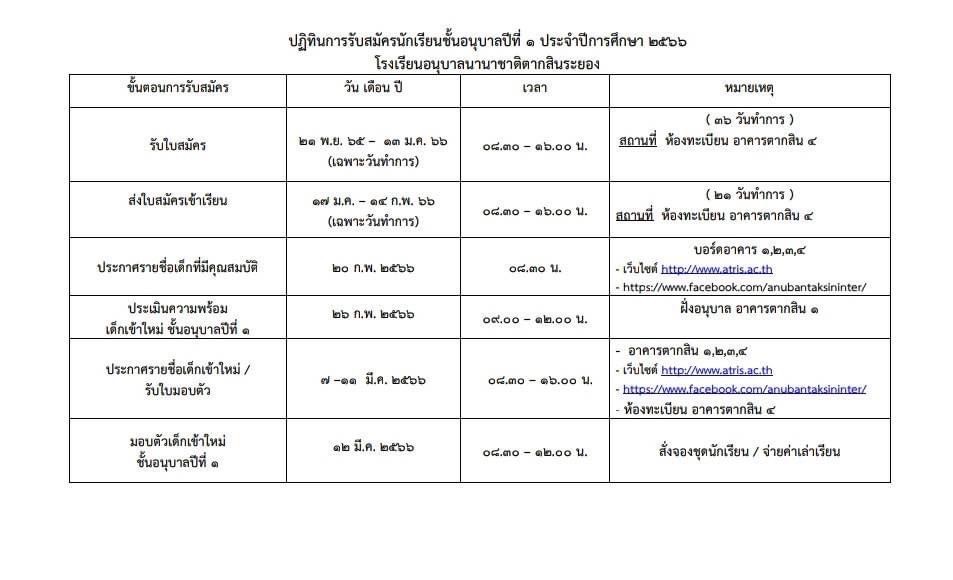 !!ประกาศ โรงเรียนอนุบาลนานาชาติตากสินระยอง!!