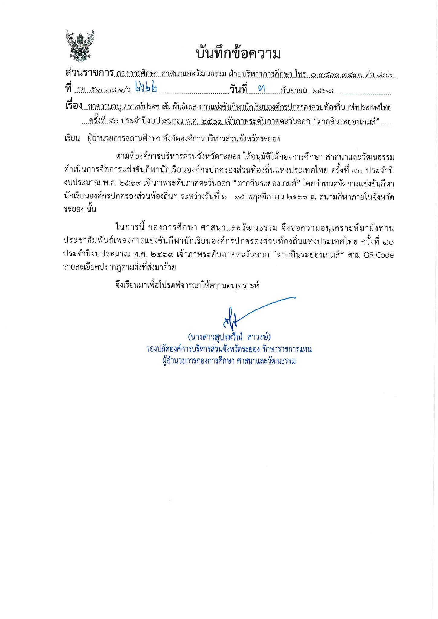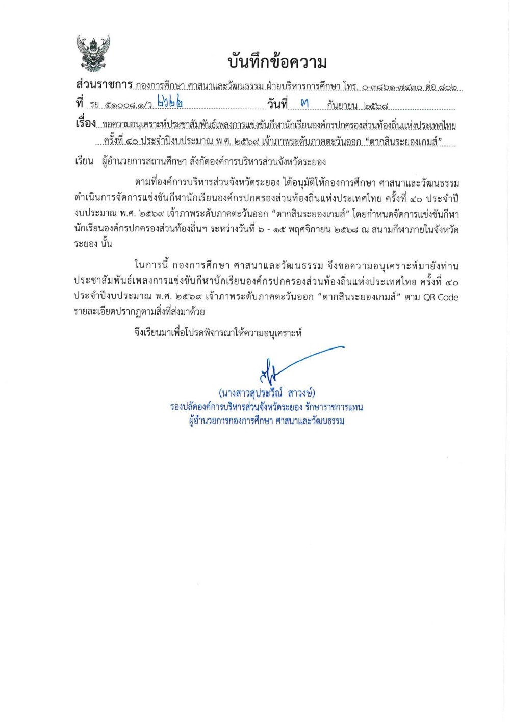 ???? ประชาสัมพันธ์เพลงการแข่งขันกีฬานักเรียนองค์กรปกครองส่วนท้องถิ่นแห่งประเทศไทย ครั้งที่ 40 ประจำปีงบประมาณ พ.ศ.2569 เจ้าภาพระดับภาคตะวันออก ตากสินระยองเกมส์