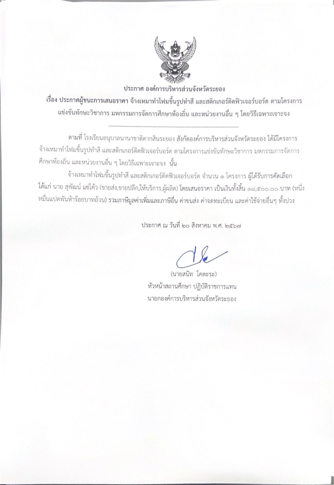 ประกาศโรงเรียนอนุบาลนานาชาติตากสินระยอง ที53/63(จ้างทำป้าย)