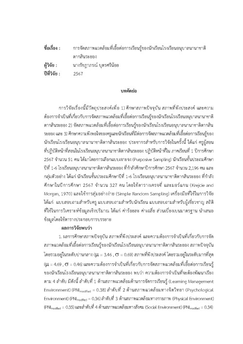 การจัดสภาพแวดล้อมที่เอื้อต่อการเรียนรู้ของนักเรียนโรงเรียนอนุบาลนานาชาติ ตากสินระยอง