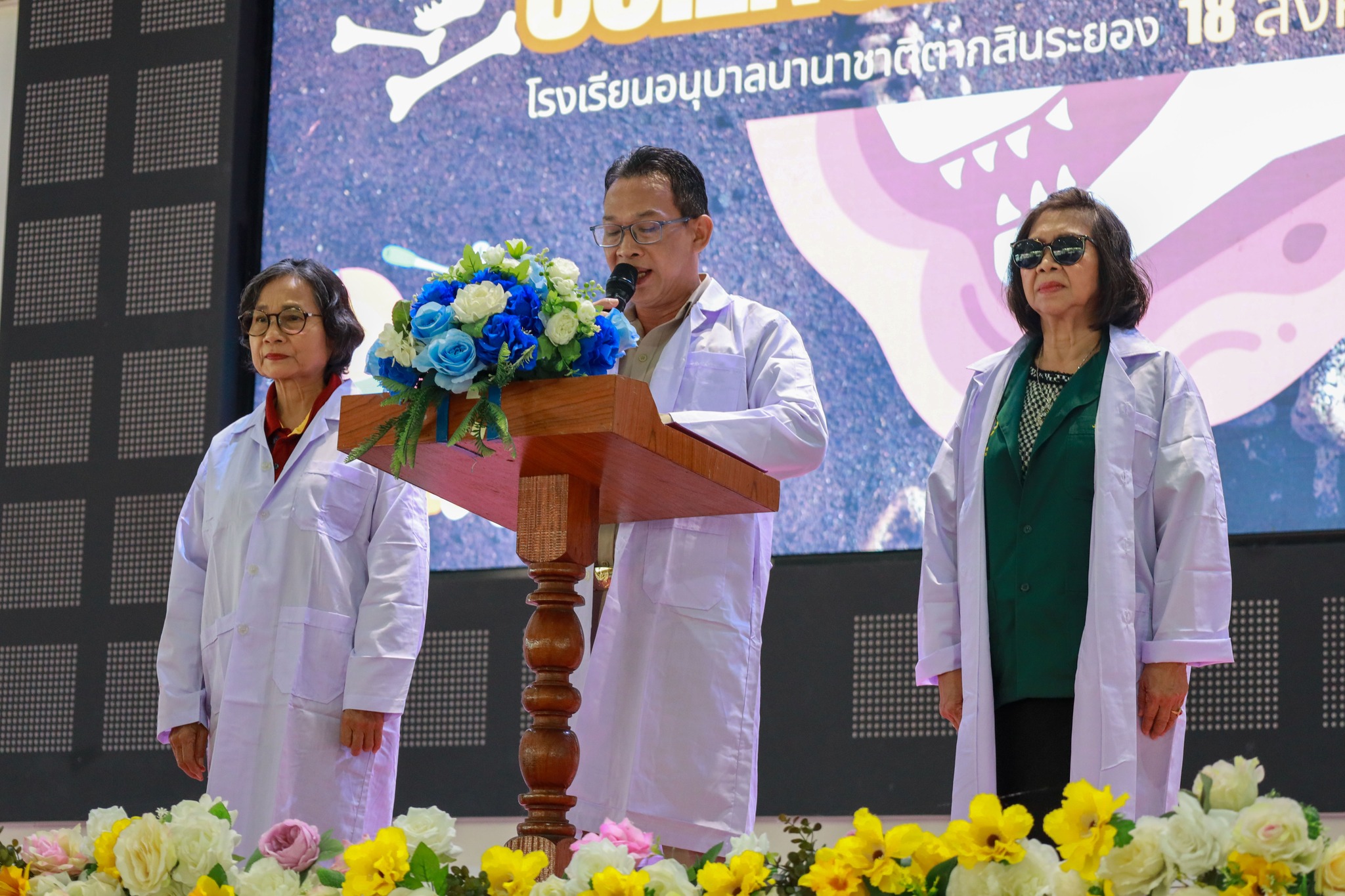 เมื่อวันจันทร์ที่ 18 สิงหาคม 2568 เวลา 8.30 น. ณ อาคารอเนกประสงค์ (โดม) อาคารตากสิน 3-5 ,7 ชั้น 1 และห้องสมุด ห้องมินิเธียเตอร์ โรงเรียนอนุบาลนานาชาติตากสินระยอง อ. เมืองระยอง จ. ระยอง นายสนิท โคตะระ (ผู้อำนวยการสถานศึกษา) เป็นประธานในพิธีเปิดโครงการค่ายวิทยาศาสตร์คณิตศาสตร์ SCIENCE & MATH CAMP 2025 พร้อมด้วยคณะผู้เชี่ยวชาญ คณะครู และนักเรียนระดับชั้นประถมศึกษาปีที่ 1-6 ทางโรงเรียนอนุบาลนานาชาติตากสินระยอง ได้จัดฐานกิจกรรมต่าง ๆ ให้นักเรียนได้เข้าร่วมจำนวนทั้งหมด 36 ฐานด้วยกัน???????? เก็บลูกปิงปอง (ใช้แรงเหวี่ยง) ,บาทเดียวก็เสียวได้ ,ทดสอบกรด-เบส ,บิงโก การบวก การลบ ,วิศวกรดินน้ำมัน ,สูตรคูณบันไดงู ,มหัศจรรย์แม่เหล็ก ,คณิตคิดก่อนดึง ,ฐานนักสืบตามรอยปริศนา ,หมากรุกสามเหลี่ยม , หมึกลอยได้ , เกมไว ใจต้องนิ่ง???????? Amazing Race of Can Station ,โดมิโนเศษส่วน ,หุ่นยนต์เป่าแป้งแทงลูกโป่ง ,หุ่นยนต์คีบกระป๋อง ,เกมกระดานจับคู่ตัวเลข ,เลมอนวัดใจ ,กล่องสุ่ม ,ฟองสบู่ยักษ์ ,Counting Carnival Toss ,Sudoku Puzzle ,Number Puzzle???????? Baggie and Pencil Magic Station ,Time Dominoes ,Blow the Cup Station ,Center of Gravity STEM Challenge Station ,Multiplication Bingo ,Number Match Game ,Paper Plane Launching Station ,แรงดันอากาศ ,Bottle Filpping Station ,จรวดมิดไซด์ ,Math Dice Challengeซึ่งการจัดกิจกรรมในครั้งนี้มีวัตถุประสงค์1. เพื่อให้นักเรียนทราบประวัติความเป็นมาของวันวิทยาศาสตร์2. เพื่อให้นักเรียนคิดวิเคราะห์ จากเหตุผลตามหลักวิทยาศาสตร์3. เพื่อให้นักเรียนได้เรียนรู้จากการทดลองให้เห็นจริง4. เพื่อกระตุ้นให้นักเรียนเกิดการเรียนรู้ มีทัศนคติที่ดีเกี่ยวกับวิทยาศาสตร์5. เพื่อให้นักเรียนทราบถึงคุณค่า และความสำคัญของวิทยาศาสตร์6. เพื่อพัฒนาศักยภาพของผู้เรียนวิชาคณิตศาสตร์ให้สูงขึ้น7. เพื่อยกระดับผลสัมฤทธิ์ทางการเรียนวิชาคณิตศาสตร์ของกลุ่มสาระการเรียนรู้คณิตศาสตร์ให้สูงขึ้น8. เพื่อเสริมสร้างเจตคติที่ดีต่อวิชาคณิตศาสตร์
